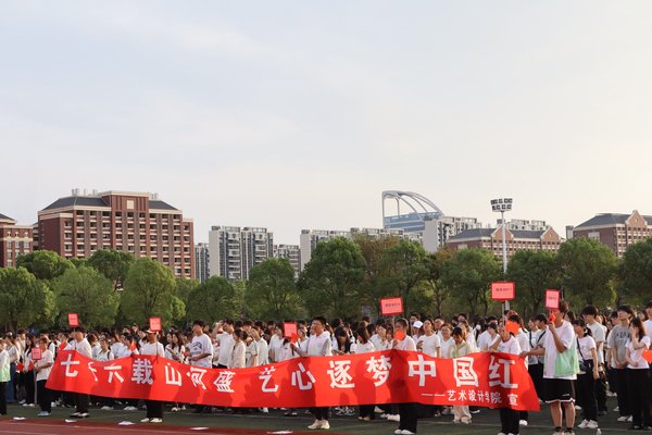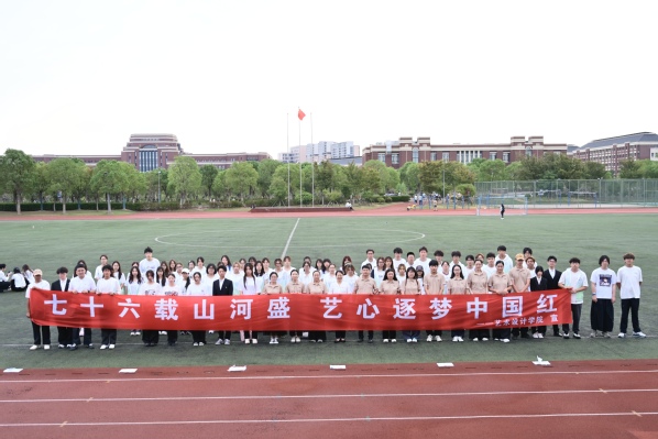 为庆祝中华人民共和国成立76周年,弘扬爱国主义精神,激励学院学子担当时代使命,艺术设计学院于9月29日清晨在学校操场隆重举行以“七十六载山河盛 · 艺心逐梦中国红”为主题的升国旗仪式。艺术设计学院2023级、2024级、2025级全体学生和老师代表参加了此次仪式。