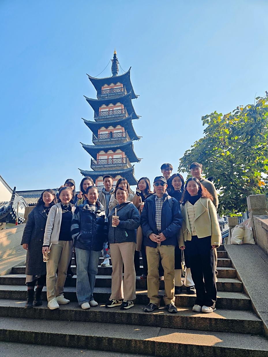 随后,教职工们前往州桥老街,打卡法华塔、古桥等古迹,参观顾维钧生平陈列室,感受 “前街后河” 的水乡风貌。轻松氛围中,同事们交流心得,增进情谊。