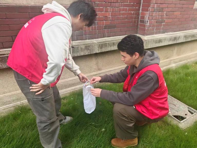 南7舍生活区的烟头清理行动更注重“靶向攻坚”。红色服务队队员提前梳理首轮易遗漏区域,对楼宇门口地垫缝隙、绿化带边缘碎石堆、楼道转角等重点位置反复排查。“经过首轮清理,新增烟头少了很多,但仍有个别隐藏在角落的漏网之鱼。”队员一边用夹子夹出草丛里的烟蒂一边说。