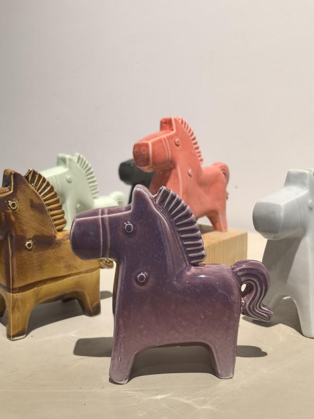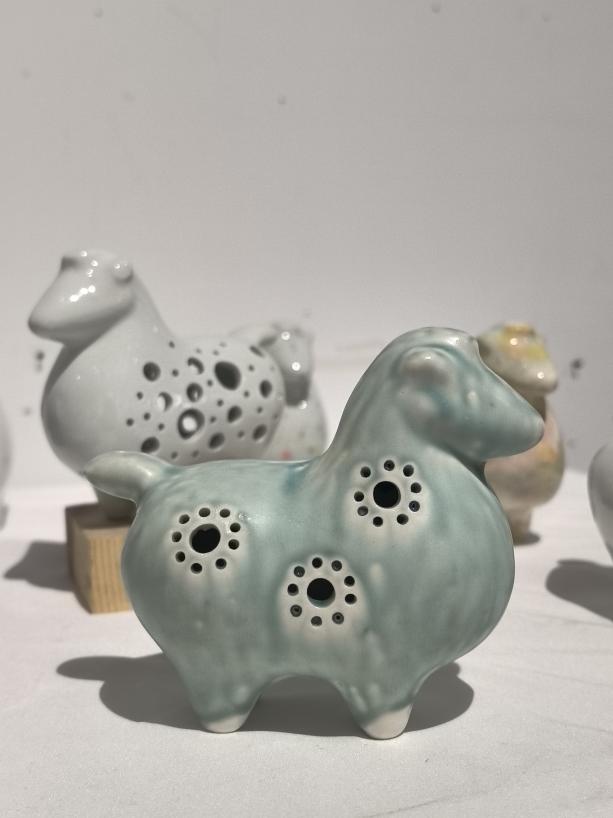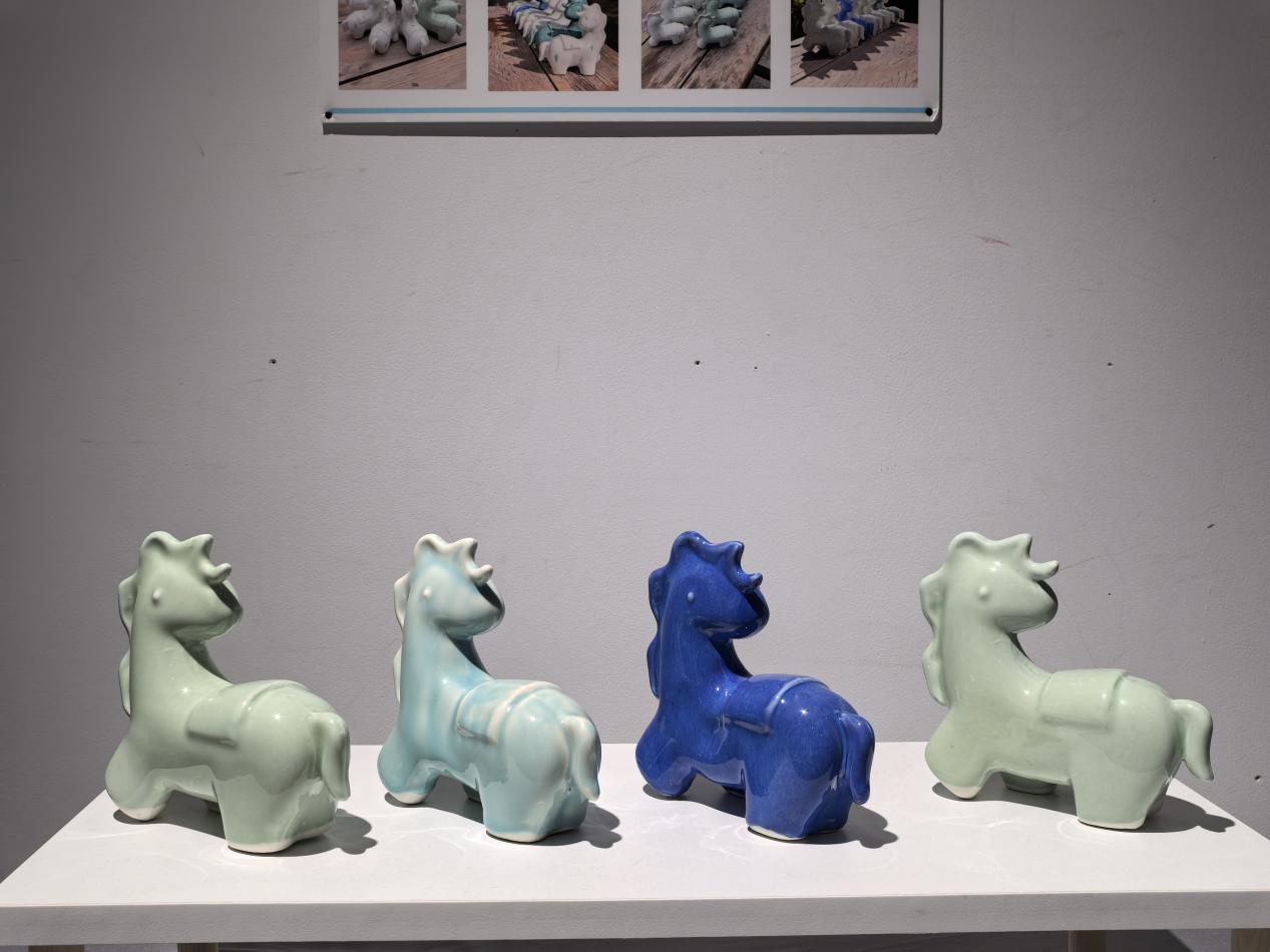 在《陶瓷模具创新设计》课程中,同学们系统掌握了从创意构思到实物成型的完整陶瓷制作流程,深刻体会到传统工艺与现代技术融合的魅力,领悟到“设计引领技术,传统对话未来”的内涵。同学们在创作中勇于尝试,如设计萌态企鹅、寓意吉祥的瓷马、章鱼、海星、贝壳等多元造型,不仅注重形态的生动性,更在釉色上大胆创新,突破常规,使作品在窑火中呈现出独特的质感与视觉效果。