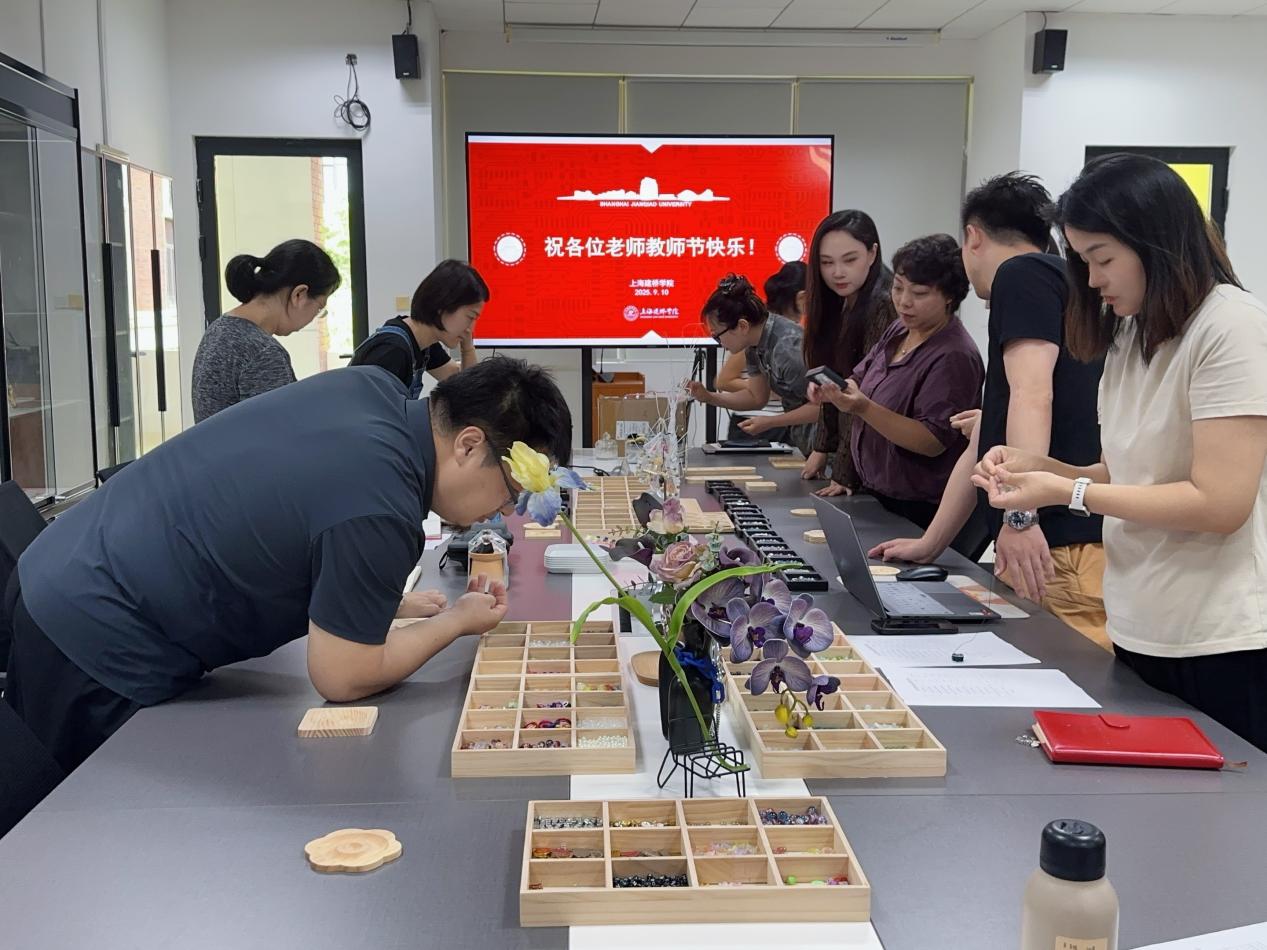 为弘扬尊师重教传统,传承中华优秀手工艺文化,在第 41个教师节来临之际,艺术设计学院于 9 月 10 日上午 9:30 在学院223会议室举办了“巧手传情,串起师恩--传统文化手串DIY贺佳节”活动,全院教职工齐聚一堂,共度温馨且富有文化韵味的节日。