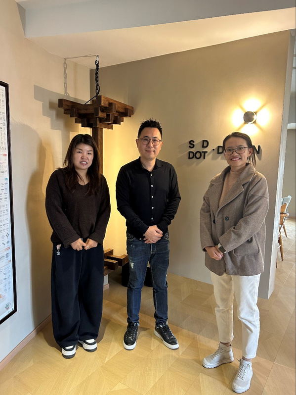 为深化校企合作,精准把握行业发展动态,切实了解实习生在岗情况,近日,环境设计系组织教师代表走访DOT.DESIGN潘悦设计事务所,与工作室主创设计师潘悦展开深入交流,围绕设计人才培养、行业技术革新及设计核心能力等关键议题交换意见。
