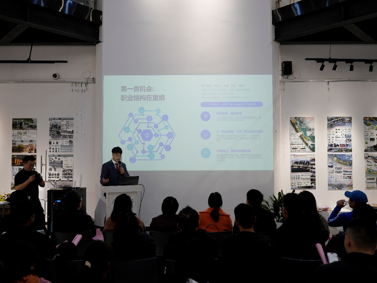 随后的自由交流环节气氛热烈,校友们畅谈行业前沿动态;现场参与活动的高中生也积极加入交流,向校友请教专业认知、升学规划等问题,校友们结合自身成长经历耐心答疑指引;在校生则围绕专业学习规划、创业筹备要点、核心能力培养等关键问题积极提问,校友们结合自身经验耐心答疑。师生、校友与高中生的多元互动中,思维碰撞交融,不仅为高中生点亮了专业探索之路,更充分彰显了艺术设计学科“薪火相传”的传承力量与“多方联动、共促发展”的活动价值。