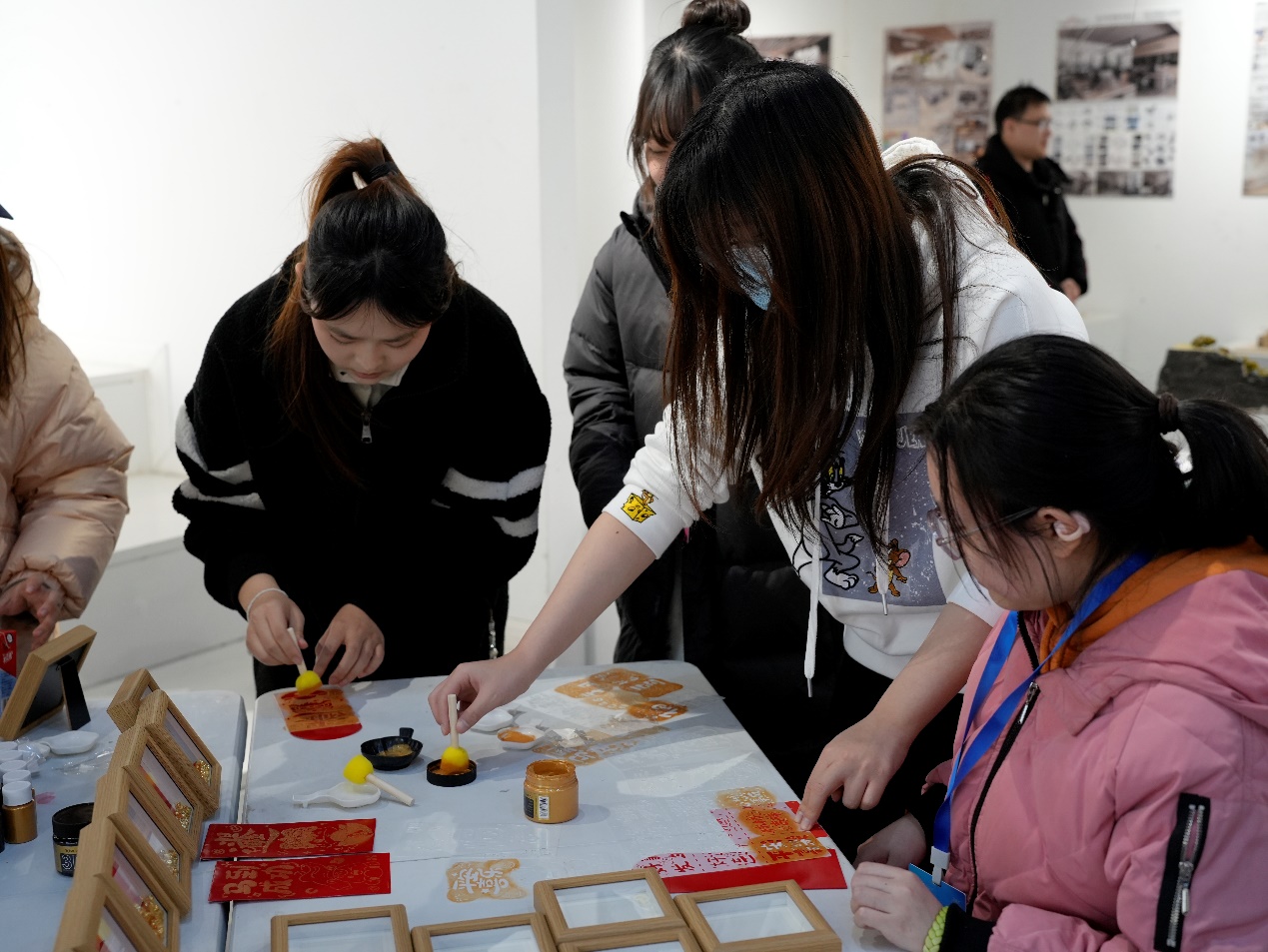 在交流环节之外,手工活动区及各专业实验室成为校友重叙同窗情谊及来访高中生感受专业魅力的地方,校友们及来访高中生或沉浸式参与植物拓染、香囊制作、透明雨伞彩绘等特色活动,或参观各专业实验室,与专业课老师畅聊,指尖流转间重拾校园记忆,体验学院专业建设的发展成果。