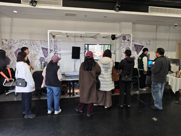 同济大学媒体实验教学中心副主任、艺术传媒学院副教授金云水,向来访教师详细介绍了学院“艺术+技术+传媒”的交叉融合理念,以及涵盖基础理论、专业技能、创新实践的多层次课程体系,重点分享了学生审美素养与数字技术能力同步提升的培养路径。同时,其展示的虚拟大空间研究成果,为我院新一届人才培养方案的优化完善提供了清晰思路,也为双方后续开展合作奠定了良好基础。
