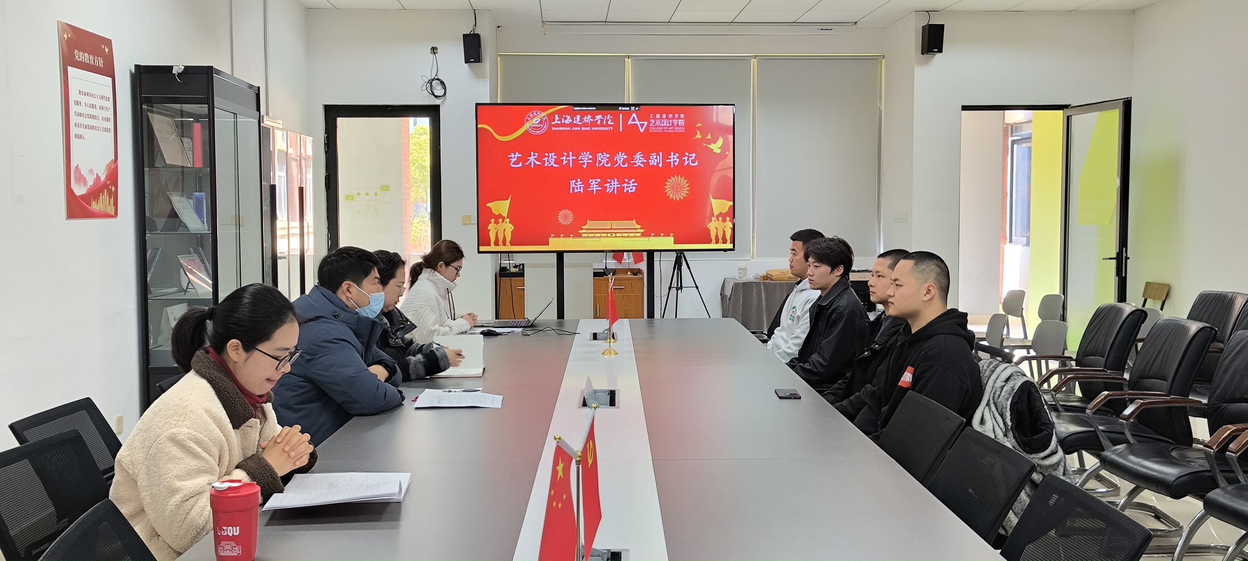 艺术设计学院2026年春季大学生入伍欢送会于3月11日在艺术实训楼223会议室隆重举行。学院党委书记王丽佳、副书记陆军,学院征兵工作站站长及工作站成员,入伍学生及其辅导员共同出席本次欢送会。