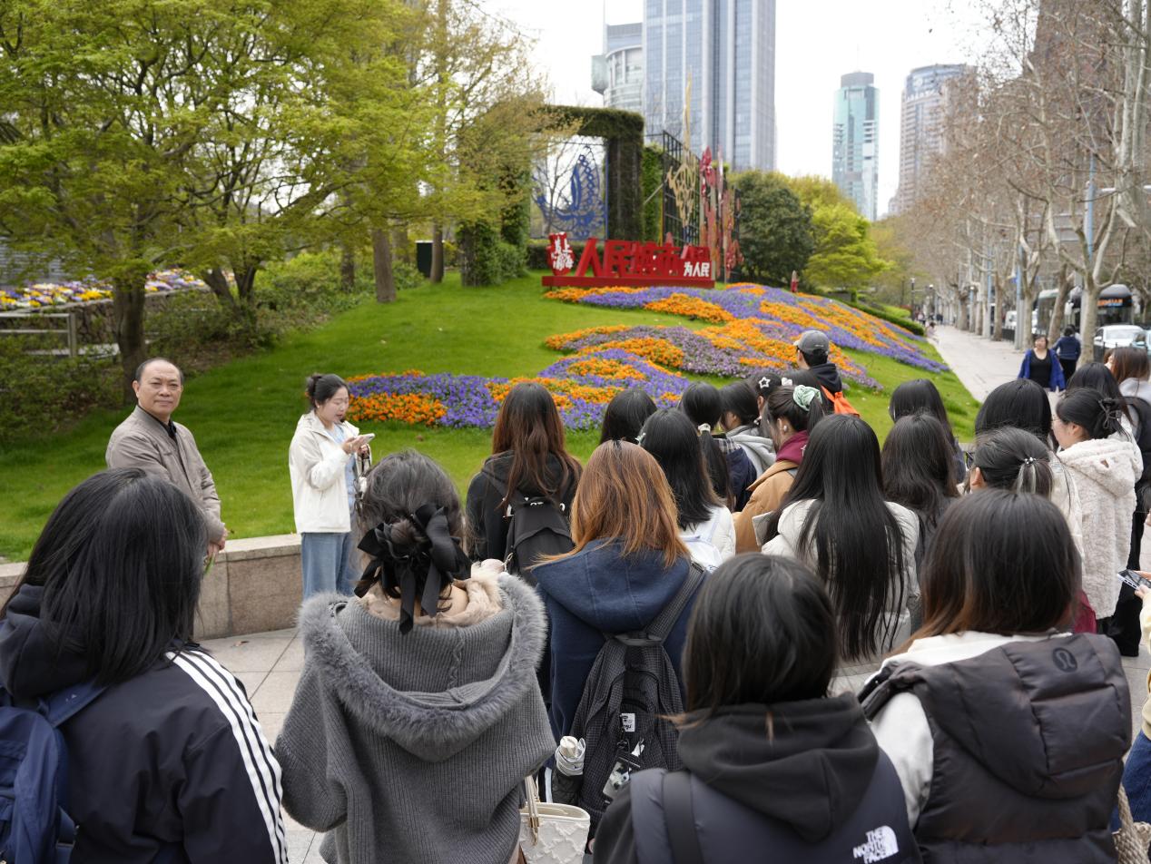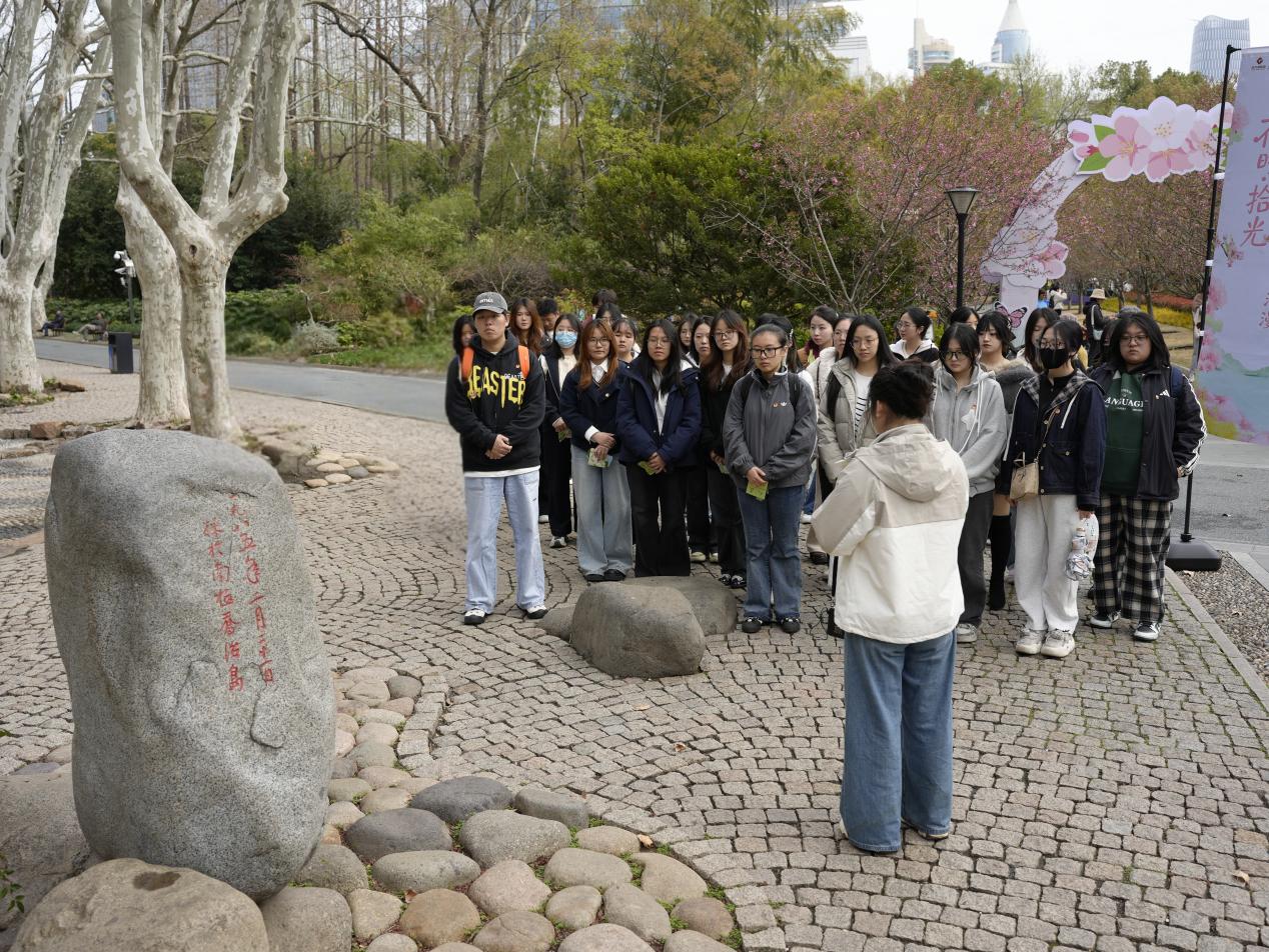 为深化入党积极分子理论学习成效,推动党性教育从理论学习向实景浸润 转变,依托学院党委与上海人民公园经营管理有限公司党支部党建共建实践育人平台,3月27日下午,艺术设计学院党委联合共建单位开展“红色路线・汲取奋进力量”主题实践活动,组织2026年春季入党积极分子培训班学员走进人民公园,以校地协同育人新模式厚植青年学子家国情怀。上海人民公园经营管理有限公司党支部书记金溢彬与学院党委副书记陆军、党委宣传委员刘慧慧等同志共同带队,学员们沿五卅纪念碑、人民城市人民建主题花坛、核心价值观海派名家刻石印章、南极石、张思德纪念园等特色点位沉浸式研学,在行走中触摸历史脉络,在瞻仰中坚定理想信念,在共建实践中感悟育人初心。